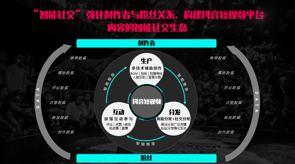 現(xiàn)在,其在全球范圍內(nèi)累積獲取 2.4 億注冊用戶,平臺每天生產(chǎn)超過 1500 萬部 UGC 內(nèi)容)。抖音這個平臺可以用10個字來概括:年輕、魔性、新潮、技術(shù)、社交。抖音是以音樂為切入點,搭配舞蹈、跑酷、表演等內(nèi)容的創(chuàng)意表達方式,為用戶創(chuàng)造豐富多用的玩法,可以讓用戶輕松快速的創(chuàng)作獨特有張力的短視頻,并在抖音社區(qū)與眾多用戶互動。